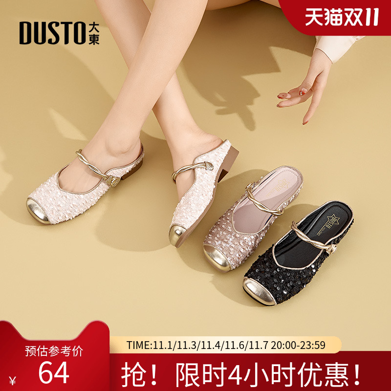 大东穆勒鞋女鞋2025夏季新款包头低跟可外穿法式玛丽珍女鞋X0253