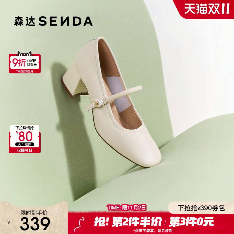 森达超软羊皮不累脚玛丽珍女鞋2025新款商场同款粗跟浅口高跟单鞋