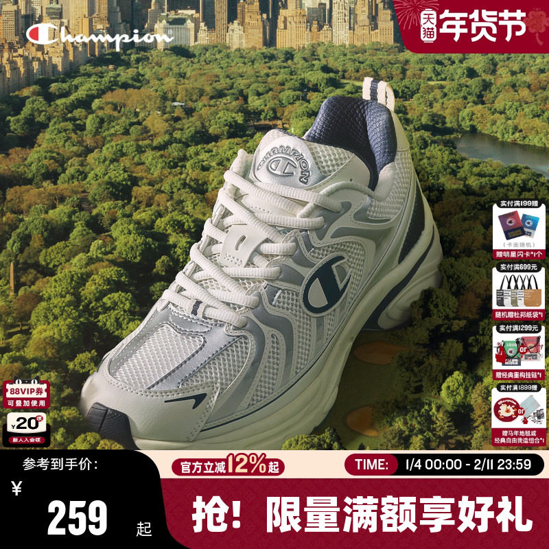 Champion冠军运动鞋女秋冬通勤音波鞋复古跑鞋男潮流休闲户外鞋子