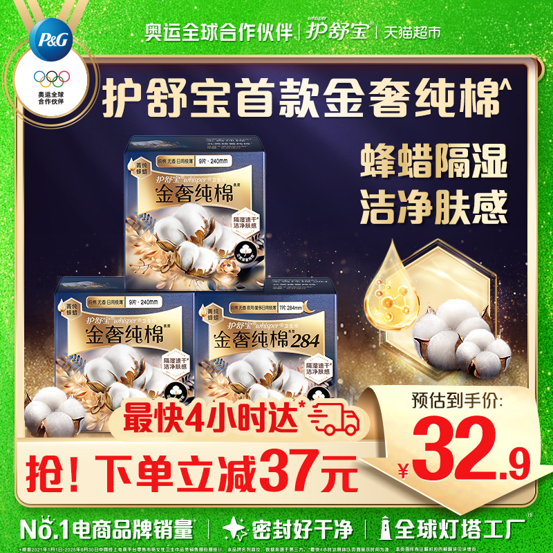 【优于新国标】护舒宝瞬洁云感棉升级卫生姨妈巾日夜组合超薄透气