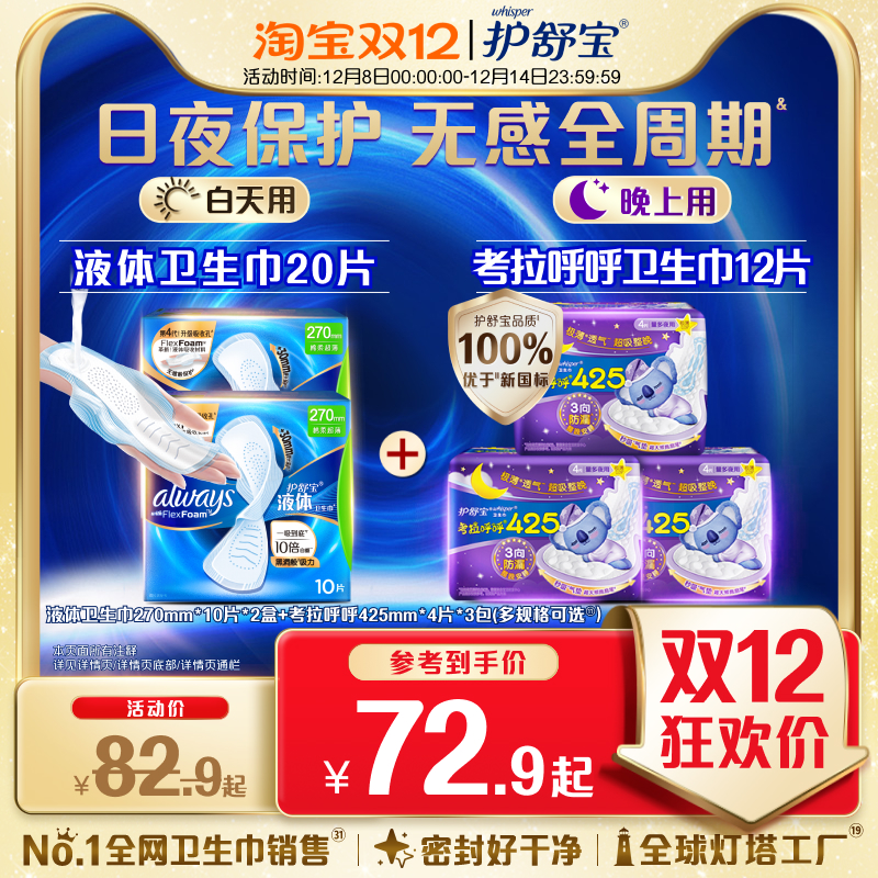 护舒宝液体卫生巾姨妈日夜用安睡裤组合240270mm正品牌官方旗舰店