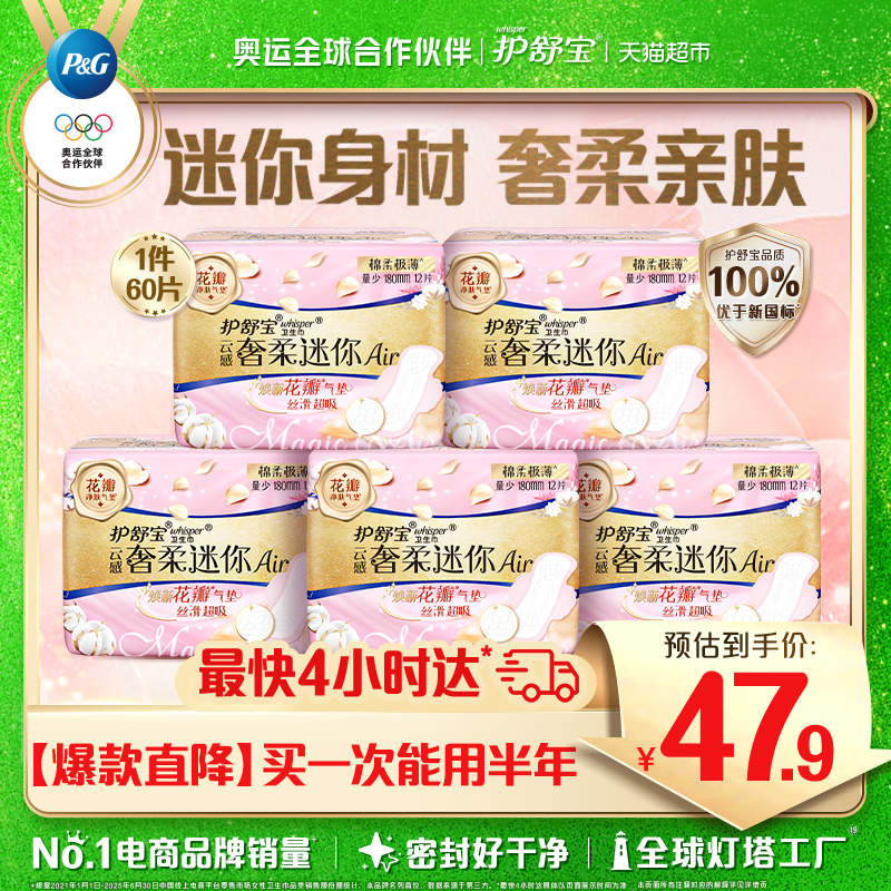 护舒宝云感奢柔棉气垫卫生巾迷你巾日用组合装180mm60片官方正品