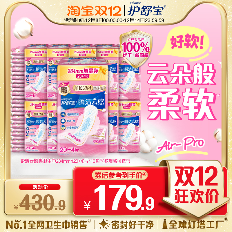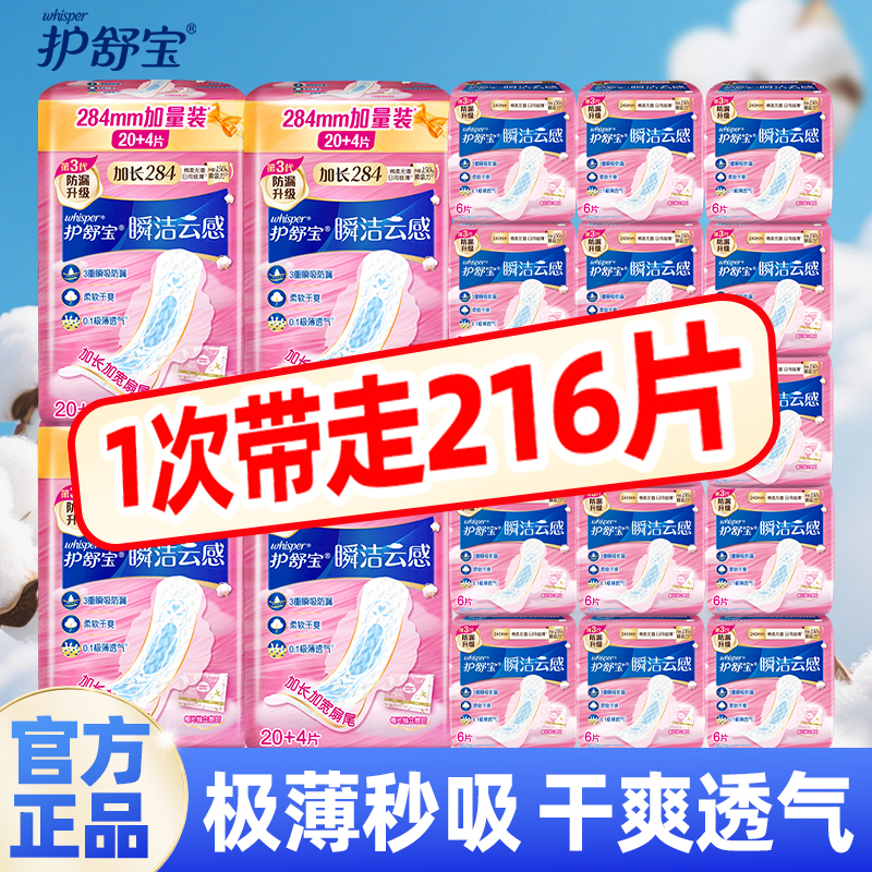 护舒宝卫生巾日用量多组合装瞬洁云感棉女士姨妈巾正品官方旗舰店