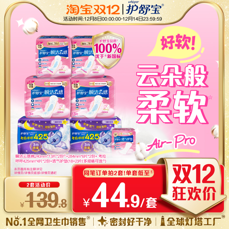 【优于新国标】护舒宝瞬洁云感棉日夜组合装卫生巾超薄姨妈巾护垫