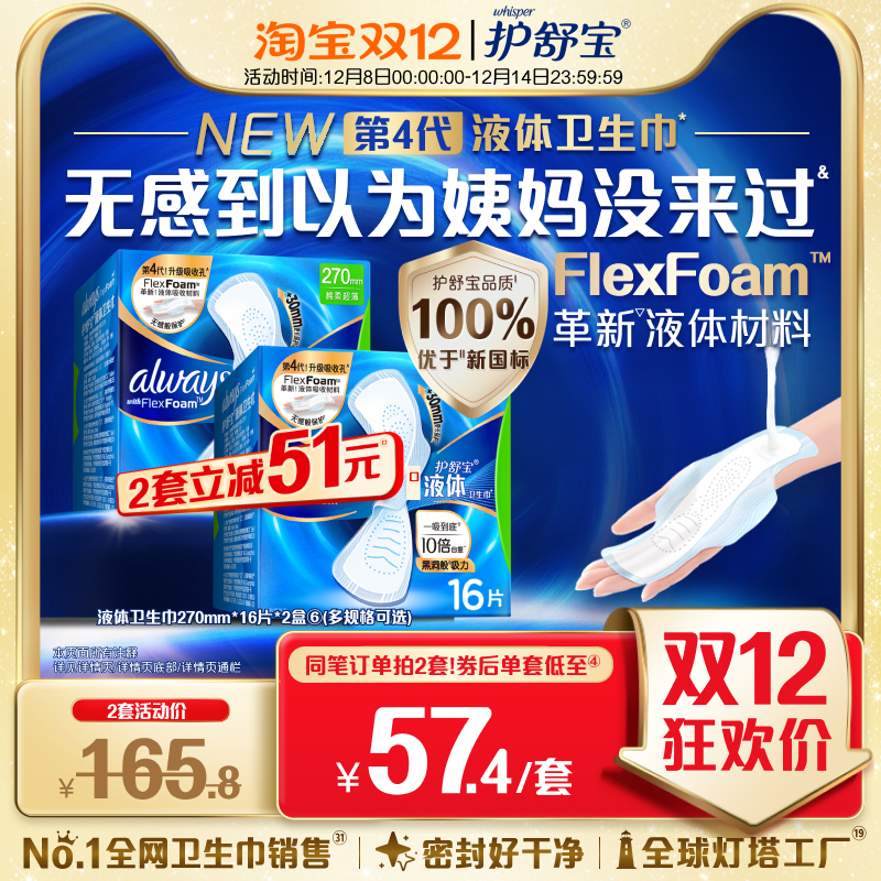 护舒宝液体卫生巾日夜用组合装270mm超薄整箱批发正品官方旗舰店
