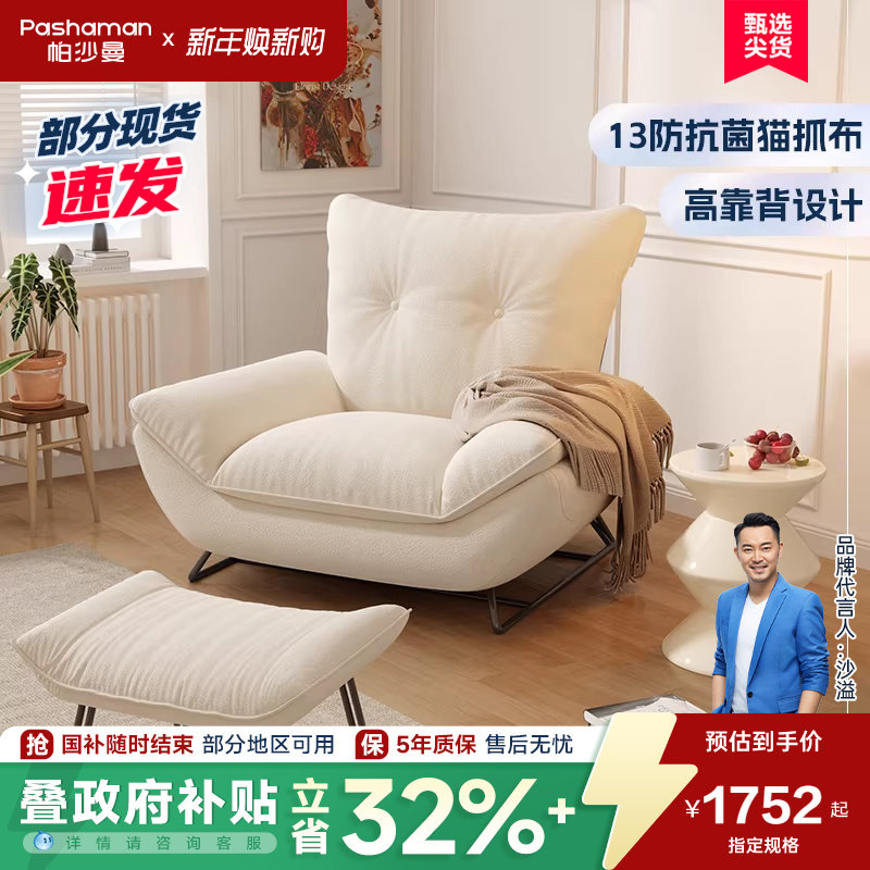 帕沙曼 单人沙发椅现代简约客厅阳台卧室奶油风休闲可躺懒人沙发