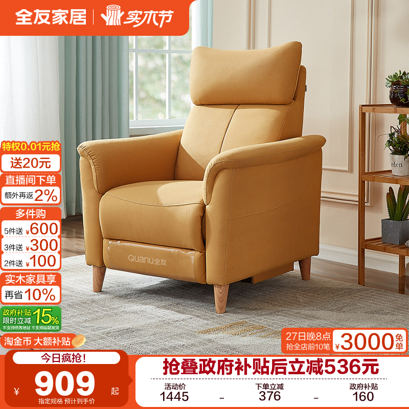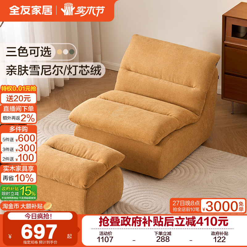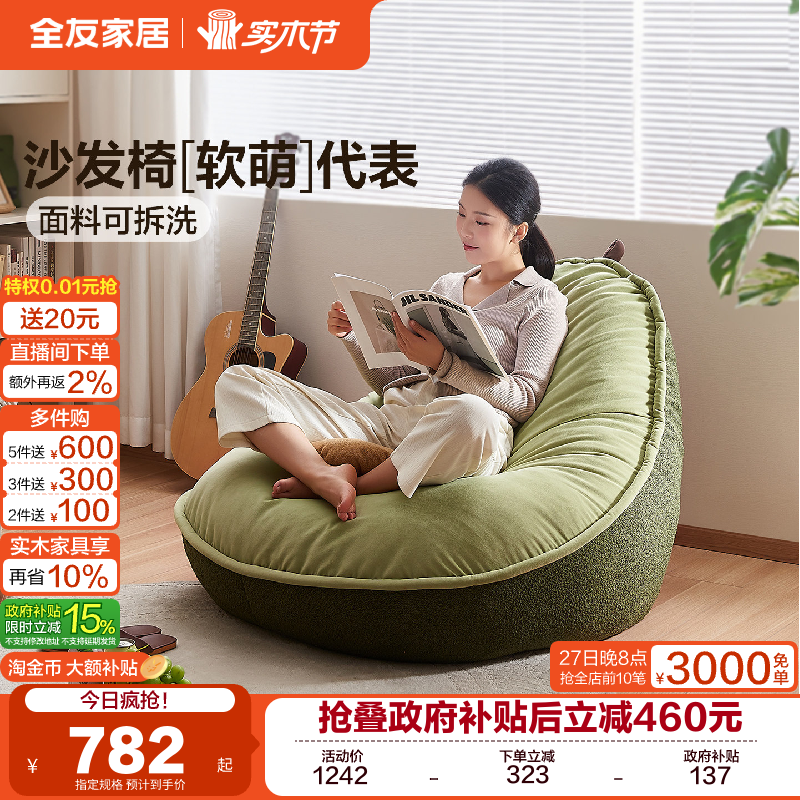全友家居简约现代单人沙发椅客厅卧室阳台懒人沙发可拆洗2025新款