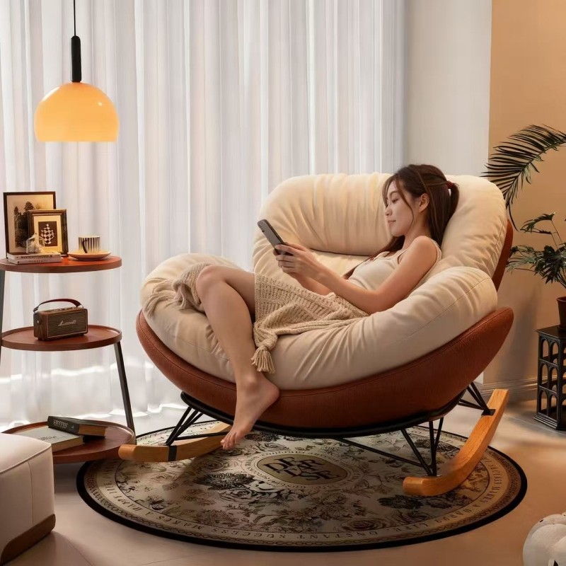 布艺蛋壳椅摇摇椅现代简约阳台单人躺椅客厅懒人椅家用沙发椅休闲