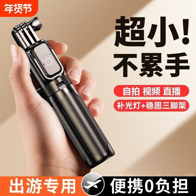 自拍杆旅游便携2025新款通用迷你落地三脚架360度旋转拍摄手持支架蓝牙遥控拍照神器热销榜华为苹果手机专用