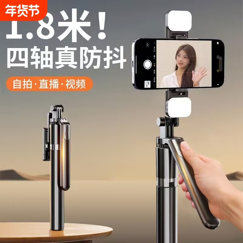 2024新款自拍杆拍照神器四脚360度旋转直播三脚支架通用防抖vlog拍摄稳定器手持迷你便携式3适用华为苹果手机