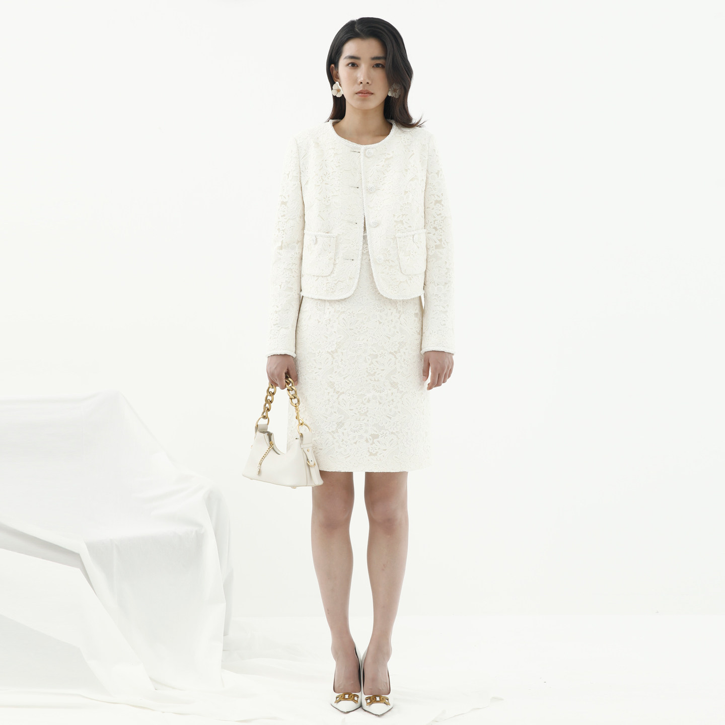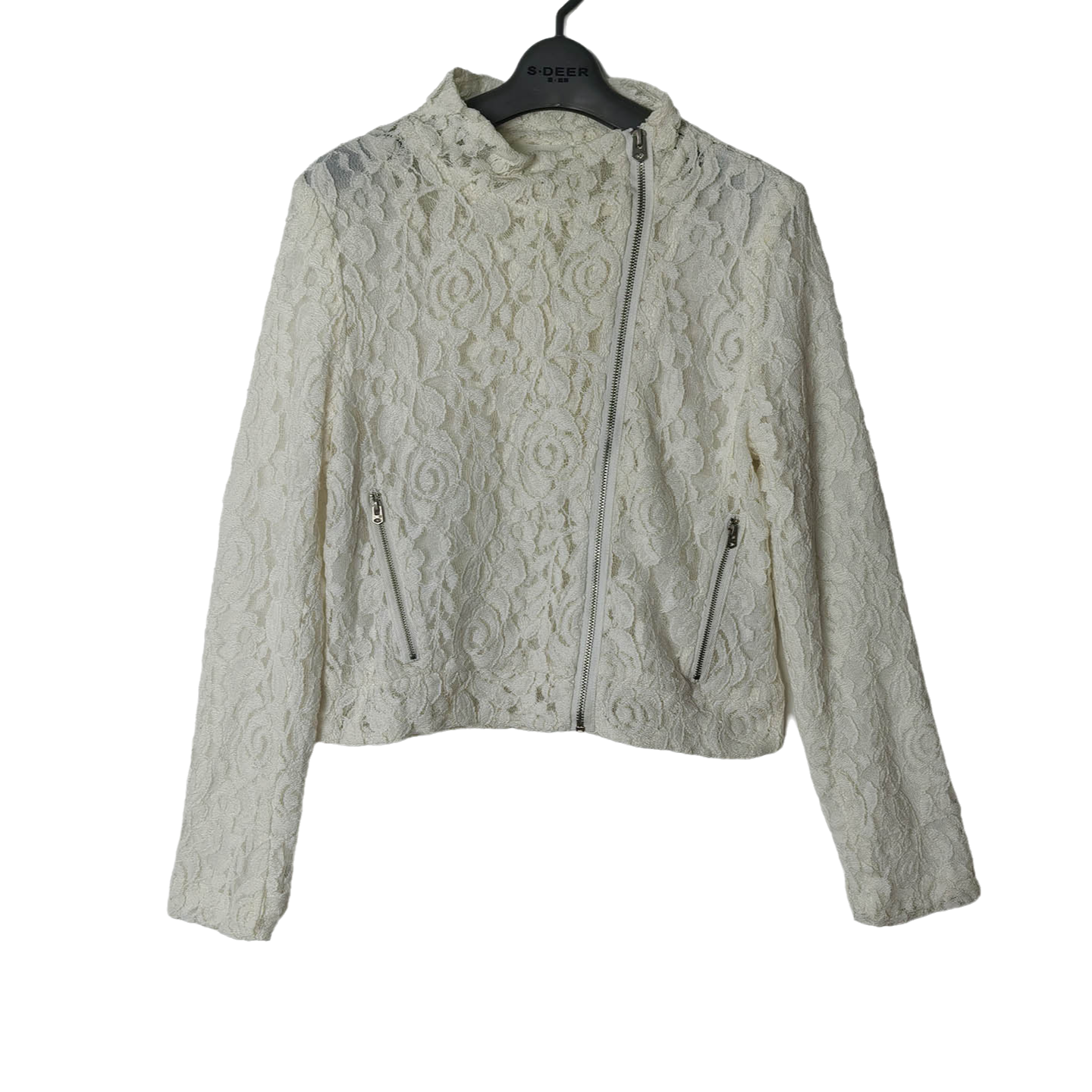 SD正品女士时尚优雅设计感修身镂空蕾丝花朵拉链短款外套2250