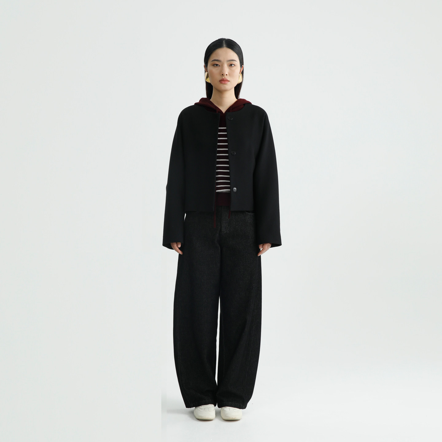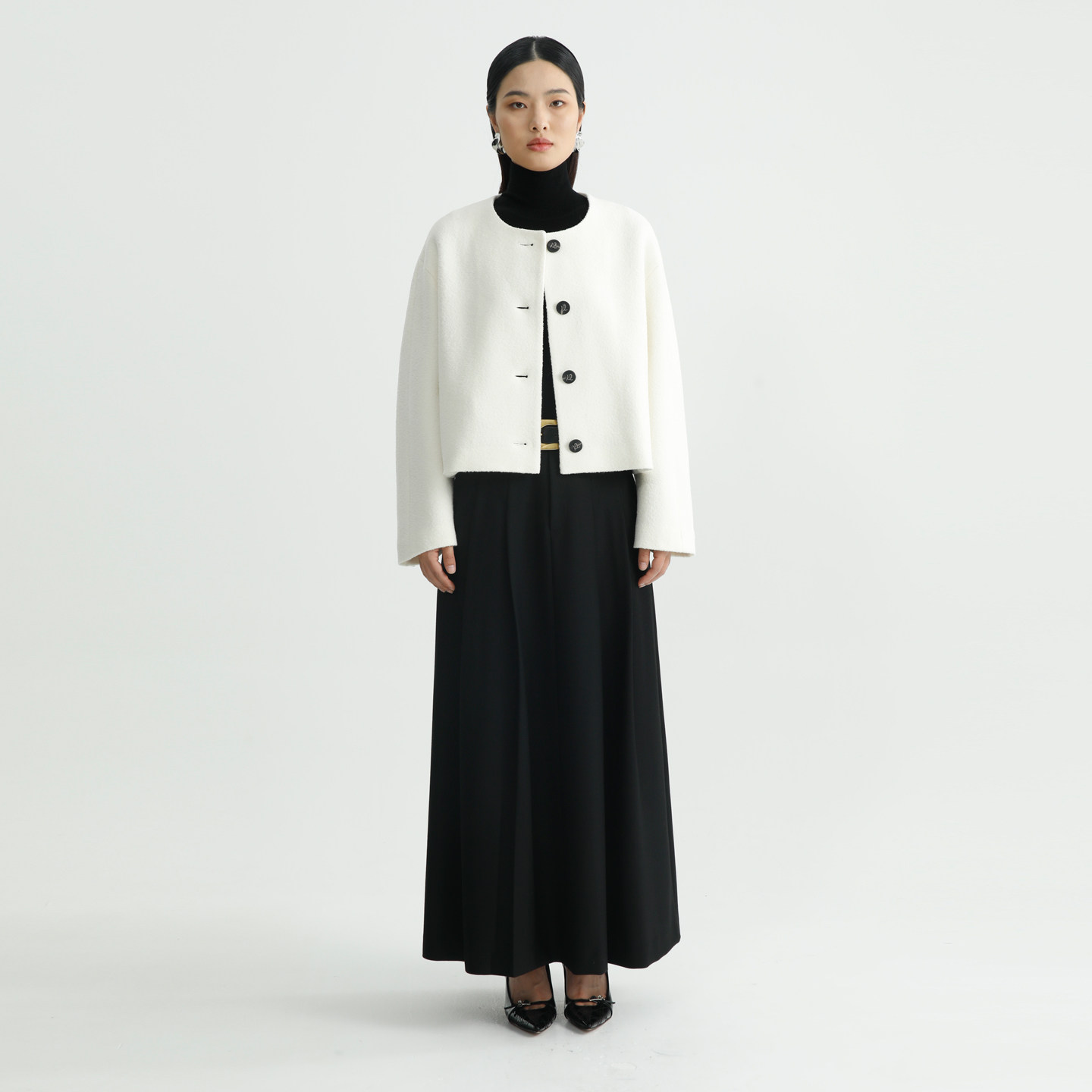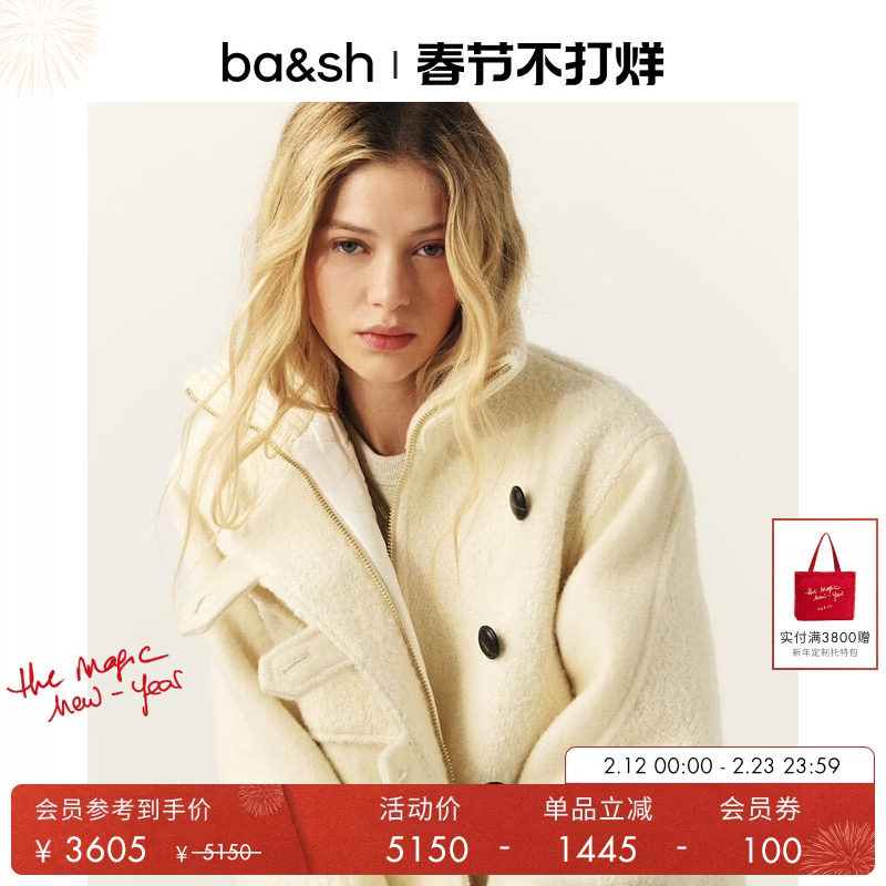 bash冬季法式简约斜裁设计羊驼毛混纺立领系扣女款短外套1E25DORA