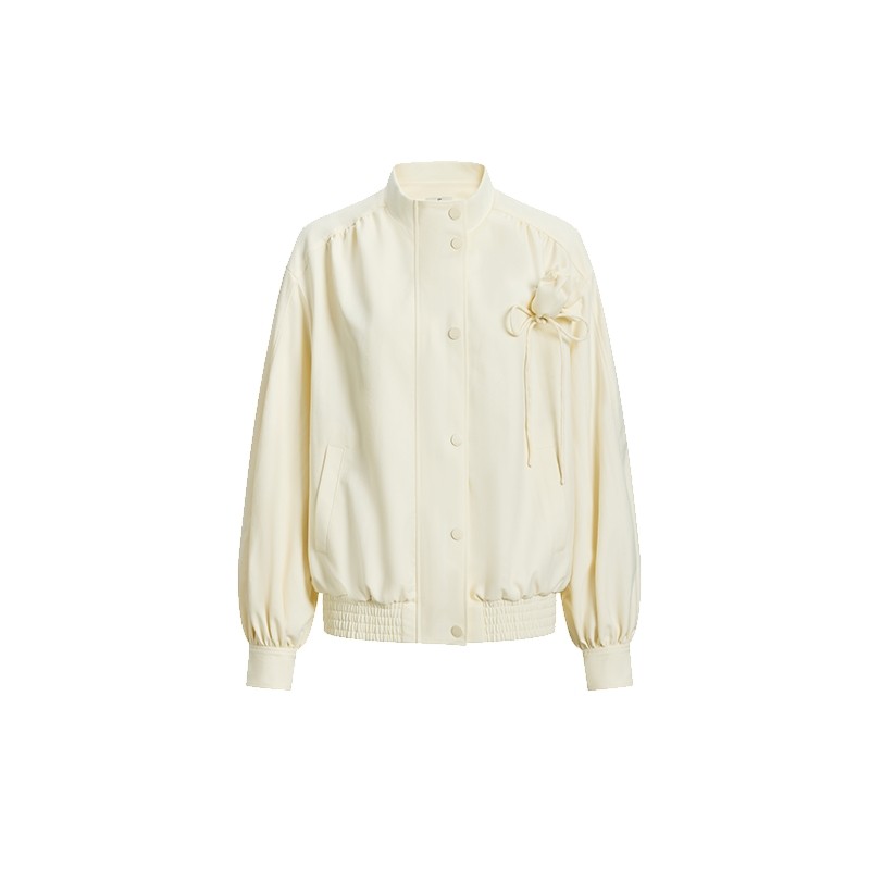 FIVE PLUS外套少女感日常立体花朵拉链夹克外套2026新款女春装