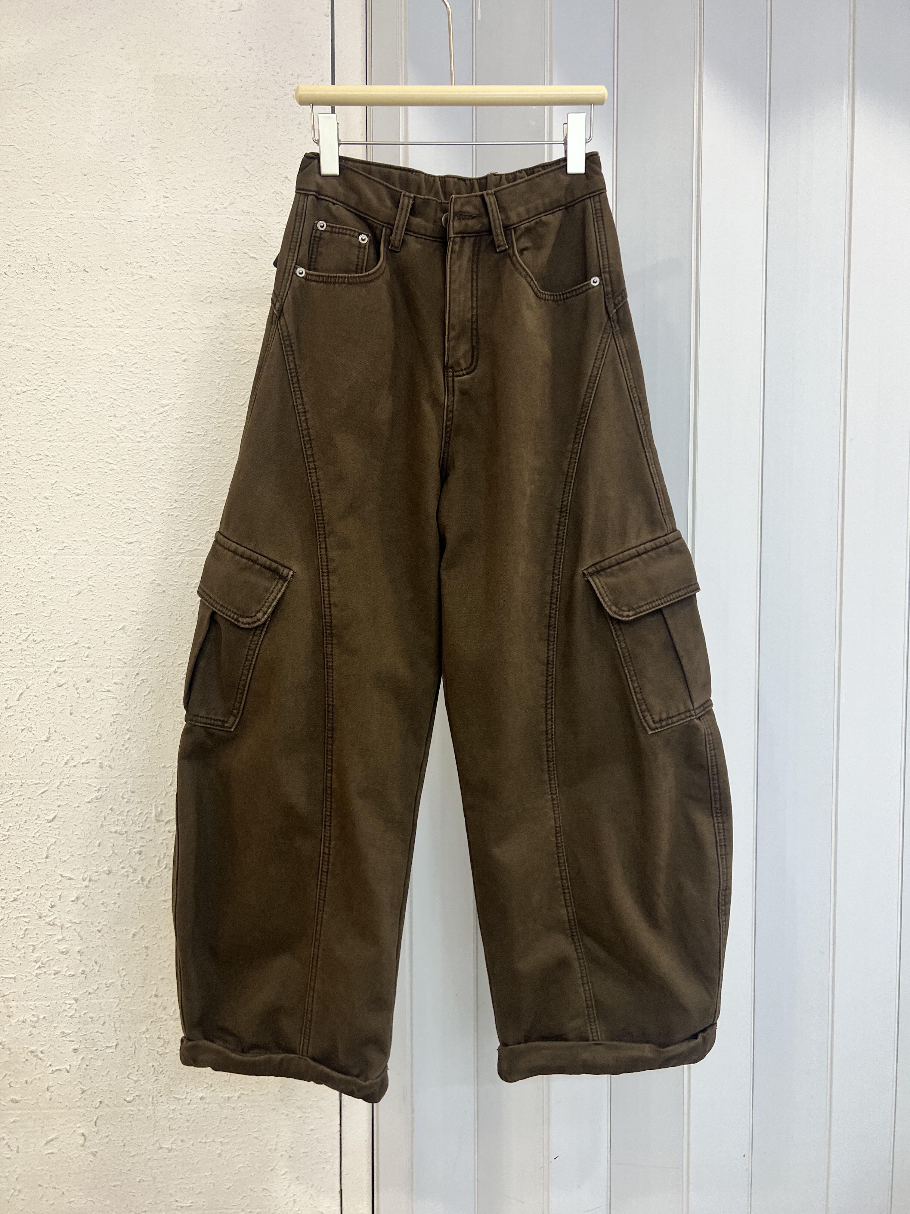 eregg26006韩国冬装宽松慵懒工装加绒牛仔裤百搭显瘦休闲弯刀裤女