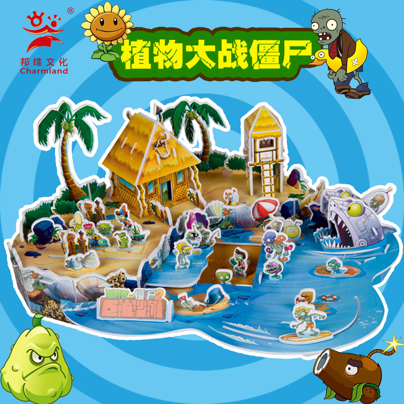 植物大战僵尸3d立体拼图僵尸王拼插纸质DIY模型儿童宝贝玩具礼物