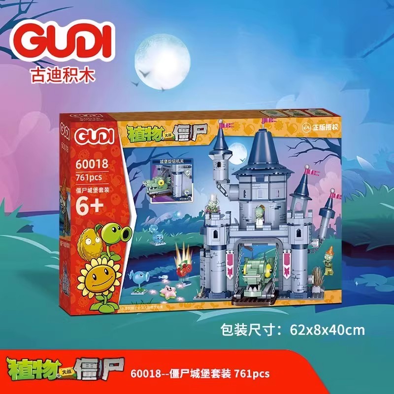 古迪60018植物大战僵尸城堡套装男孩小颗粒拼装积木拼插玩具礼物