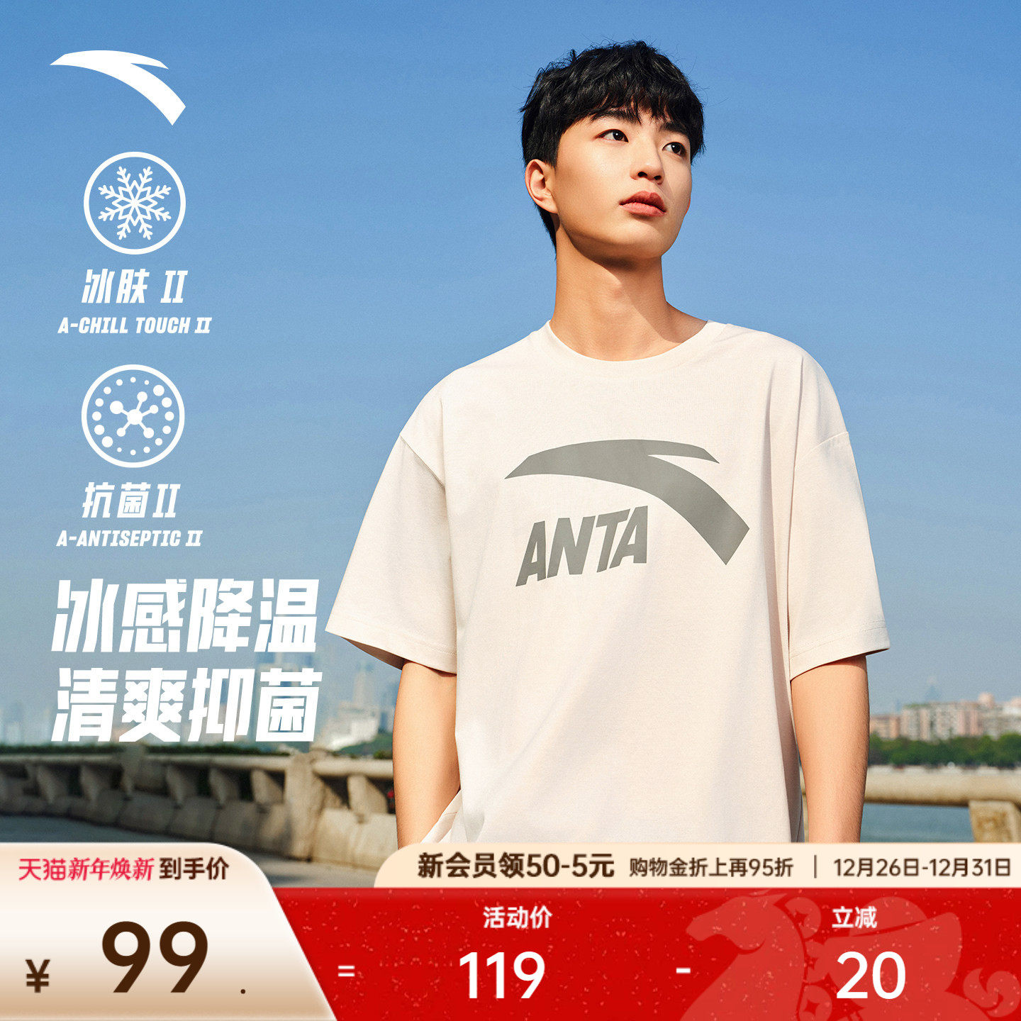 安踏休闲短袖t恤男女同款夏季新款圆领针织运动上衣宽松冰丝半袖
