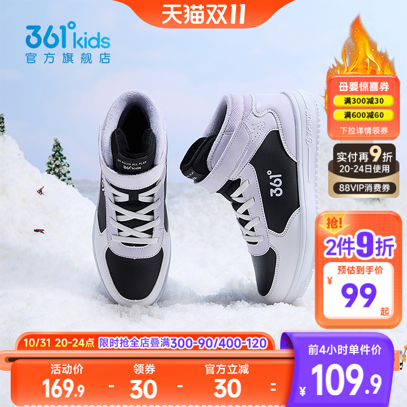 361童鞋女童板鞋儿童棉鞋冬季款加绒高帮白色运动鞋男童二棉鞋子