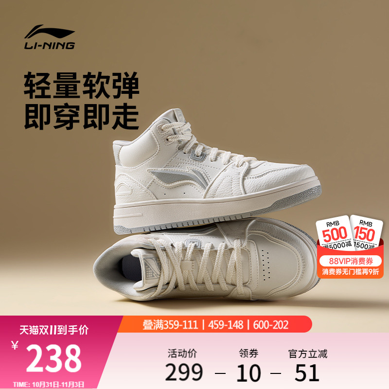 李宁天迹HI高帮板鞋女鞋冬季新款经典复古休闲鞋子加绒运动鞋女款