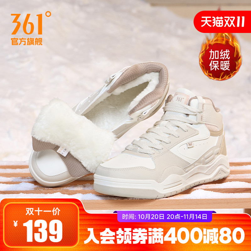 骨头鞋361加绒女鞋运动鞋2025冬季新款加毛休闲鞋大棉鞋高帮板鞋