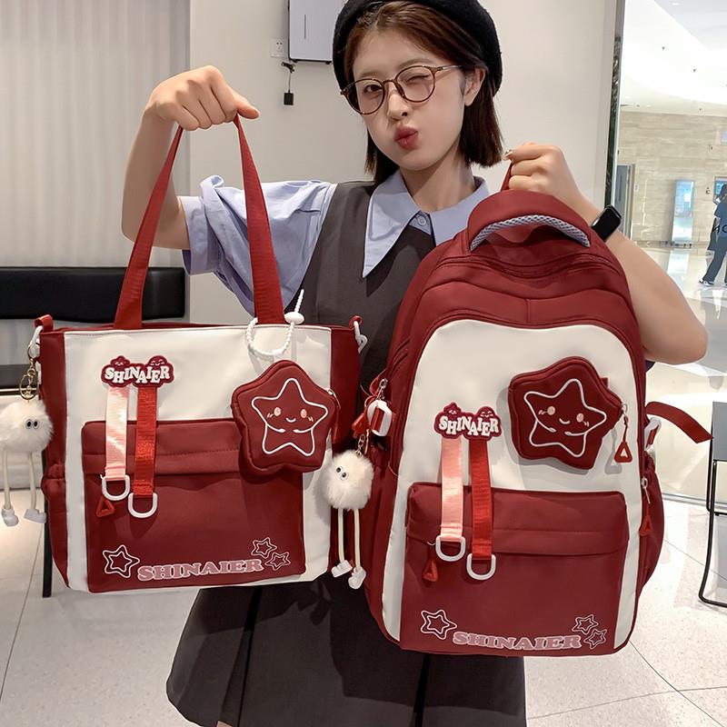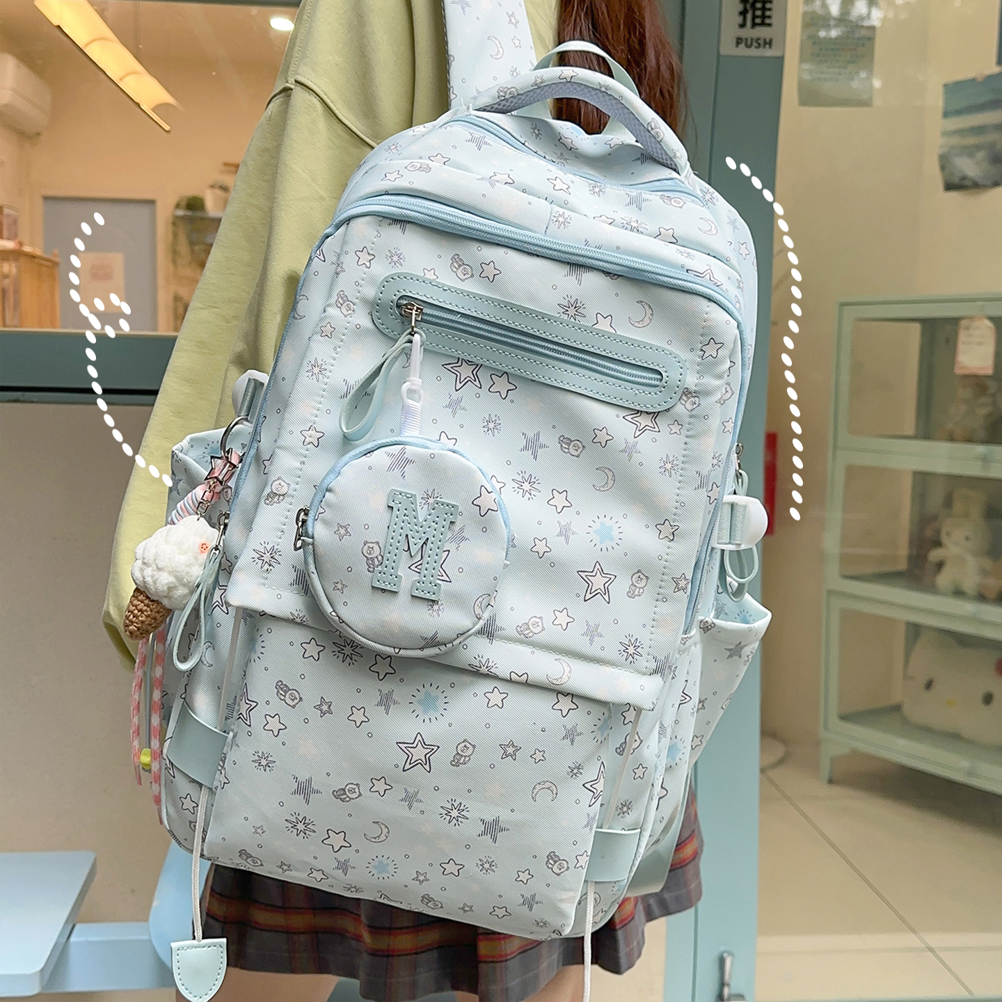 韩版书包女ins风可爱星星印花背包休闲通勤学生包初高中生双肩包