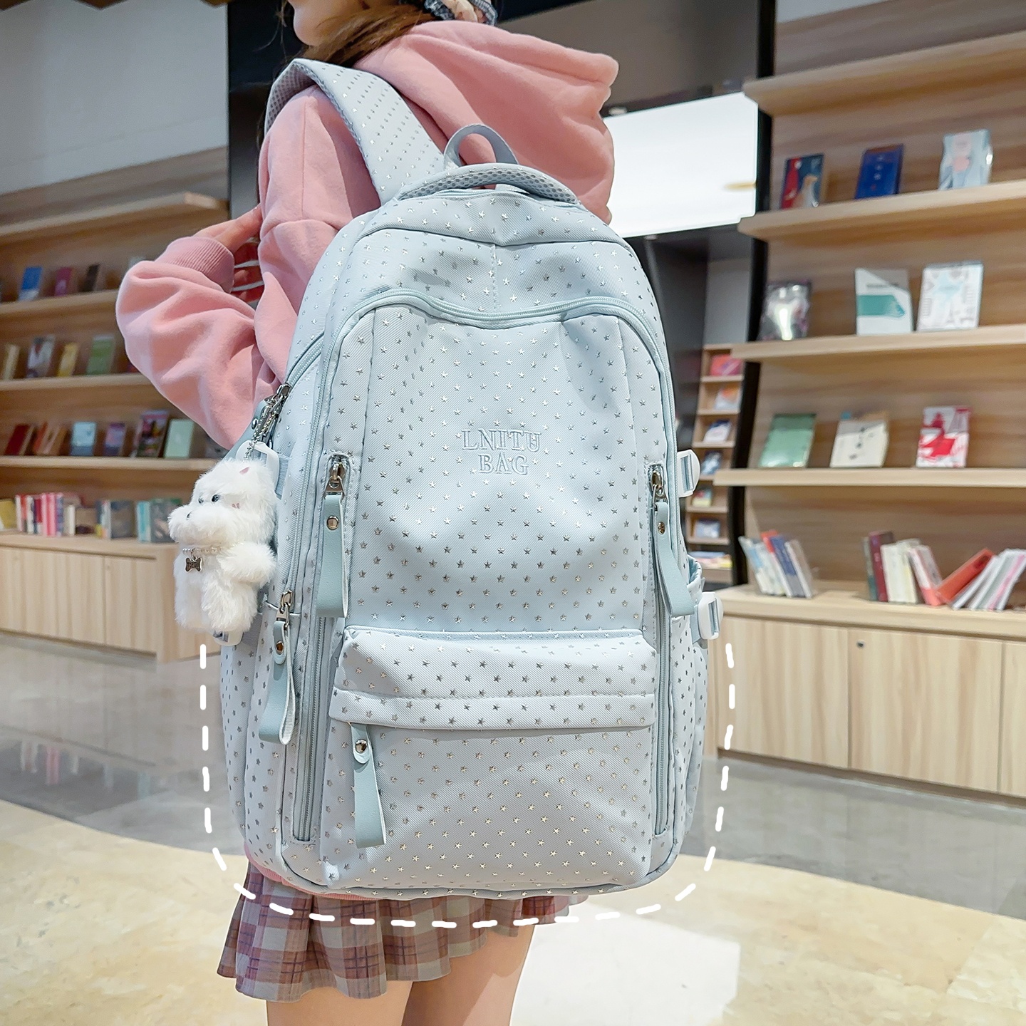 韩版书包女生初中生大容量小学生高颜值满天星轻便宽肩带双肩背包