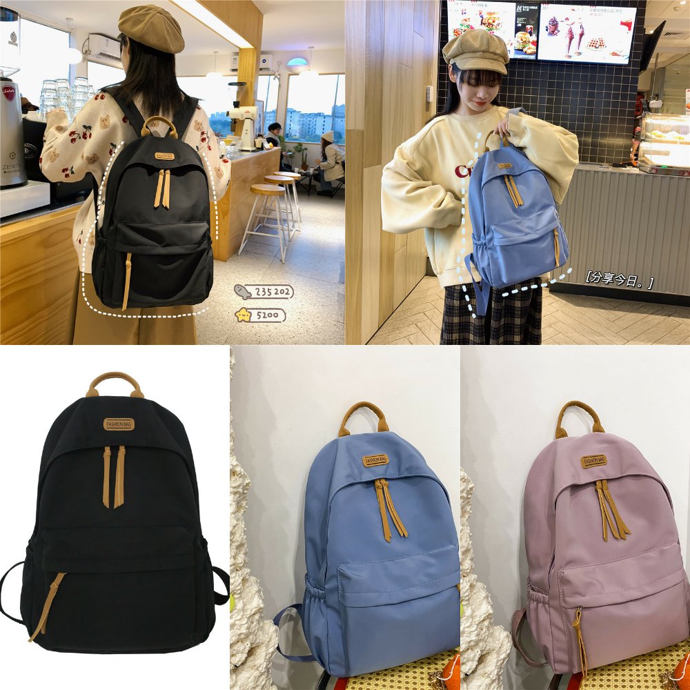 NR古着感简约纯色牛津布双肩包女韩版书包女大学生背包女双肩百搭