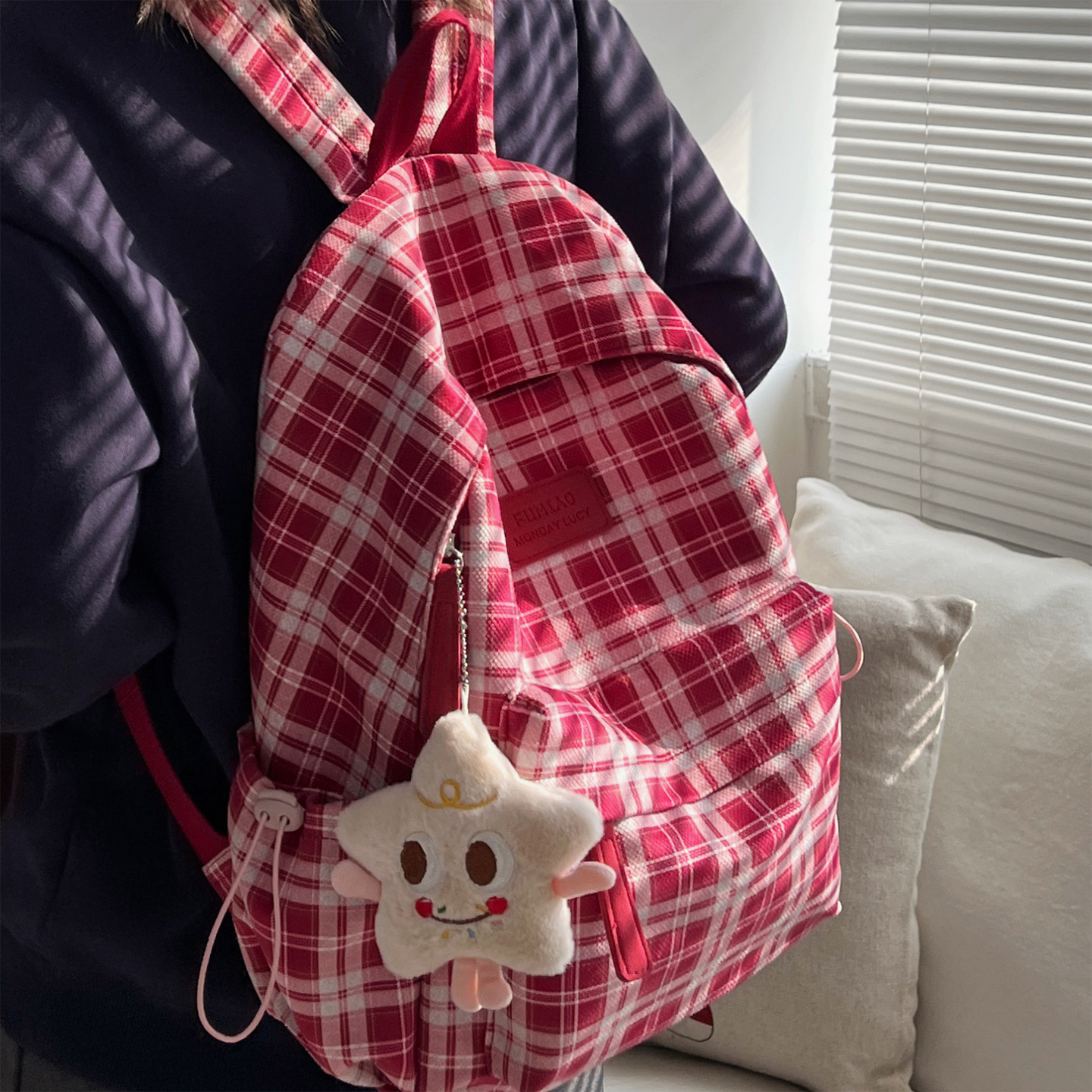 格子复古秋冬ins韩版书包女初中生 大学生简约文艺轻便旅行双肩包