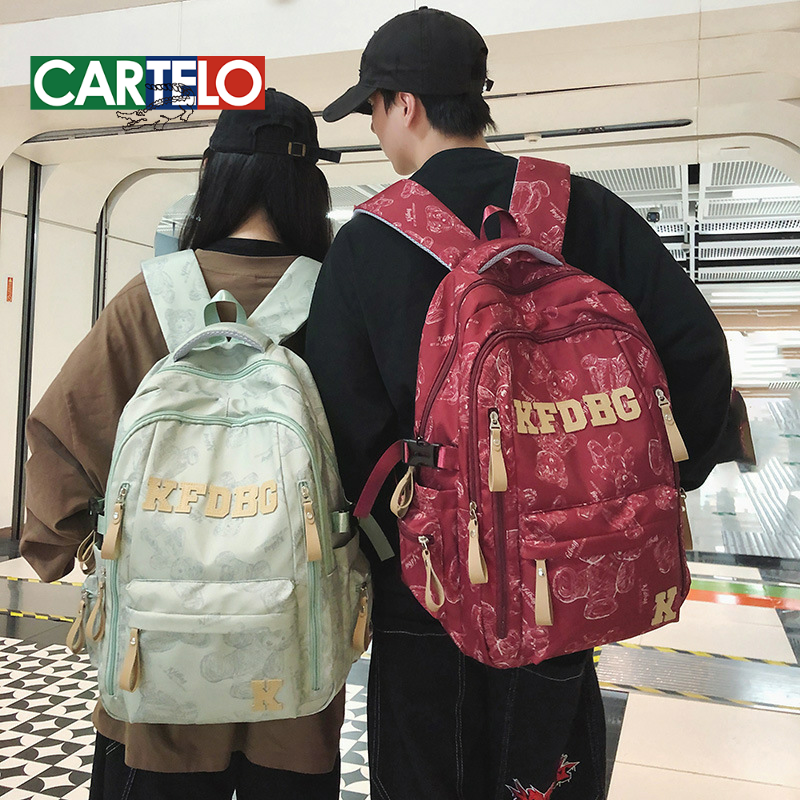 2025美式书包女初高中生印花涂鸦双肩包大学生电脑包男韩版旅行包