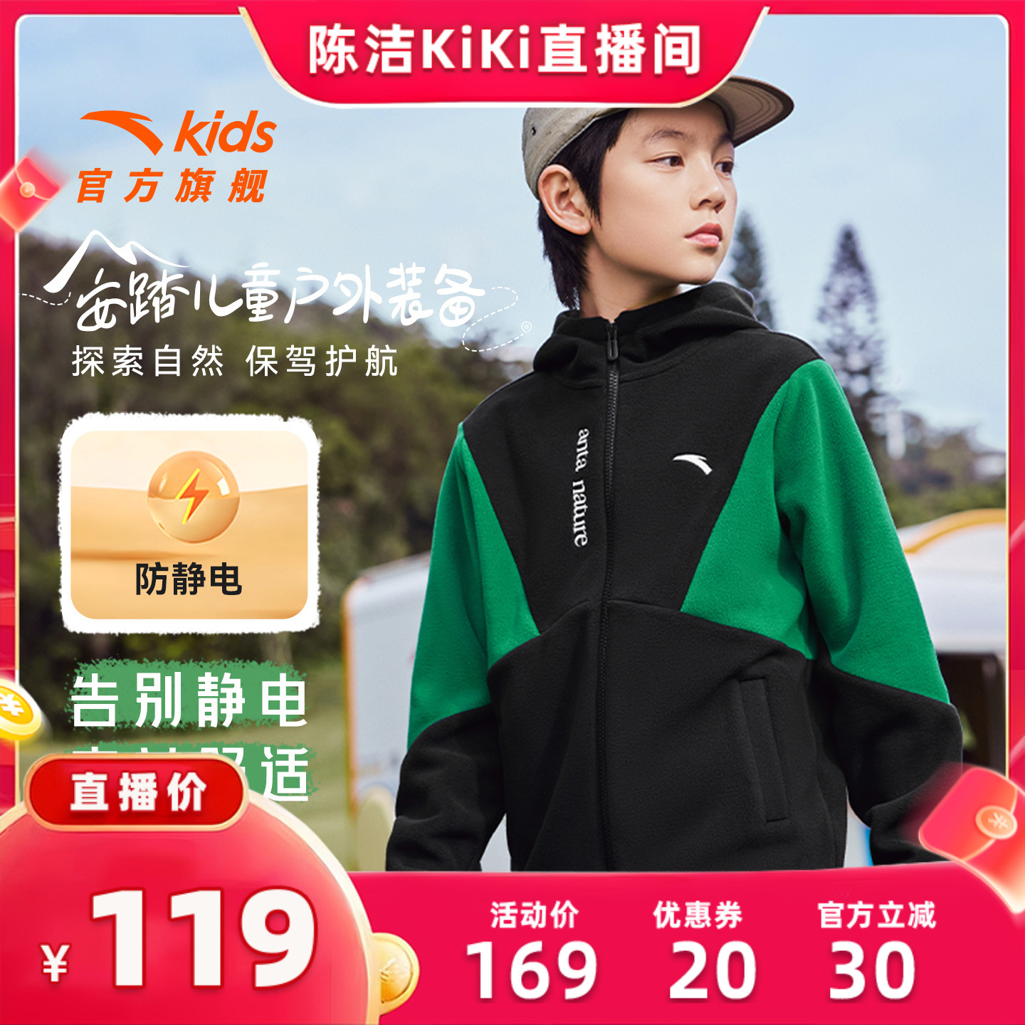 安踏儿童男童保暖摇粒绒外套2025秋冬新款儿童抗静电女孩洋气衣服