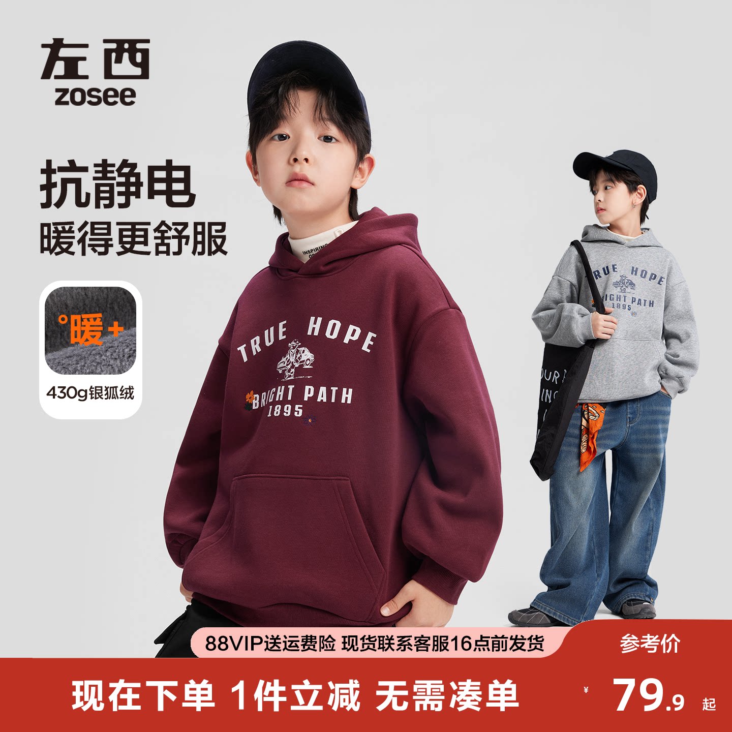 左西童装男童加绒卫衣2026新款儿童秋冬装连帽外套中大童冬季上衣