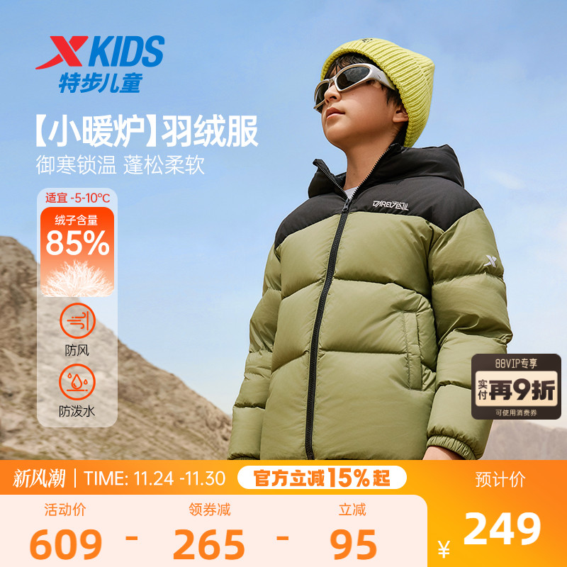 特步童装儿童羽绒服男童加厚冬装2025年秋冬款大童保暖外套防寒服