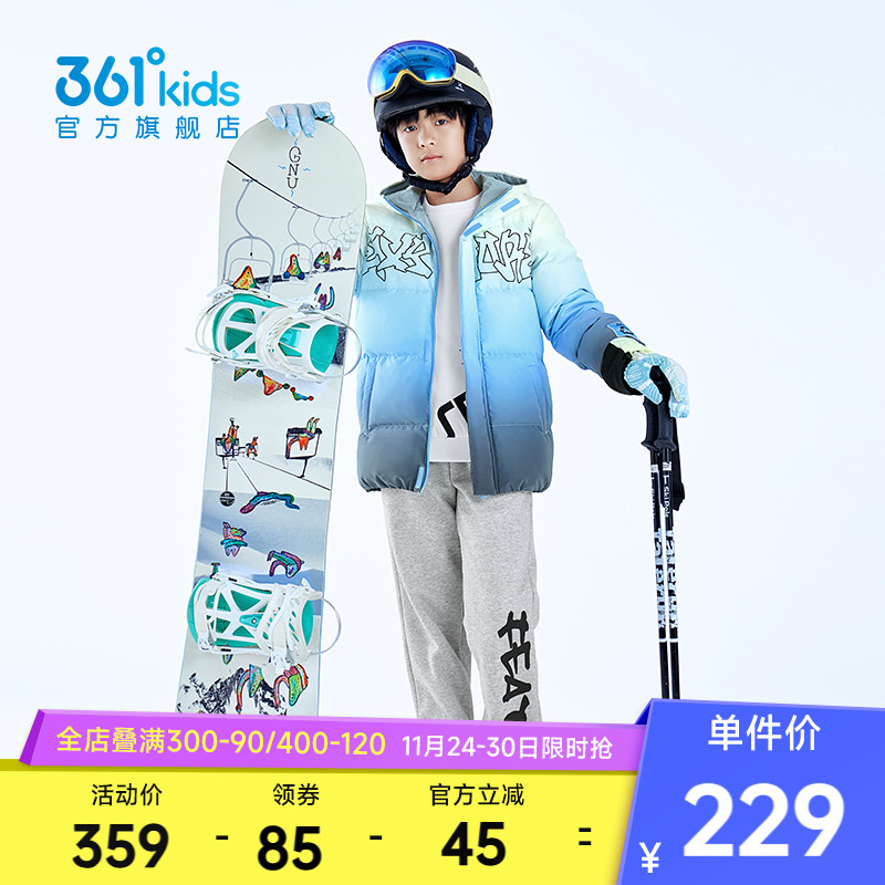 石墨烯发热|361童装男童连帽羽绒服2025秋冬儿童中大童外套上衣