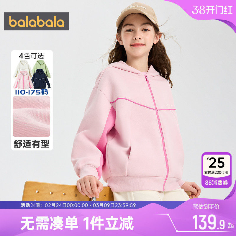 巴拉巴拉儿童外套男童女童连帽卫衣春秋款童装中大童宝宝休闲上衣
