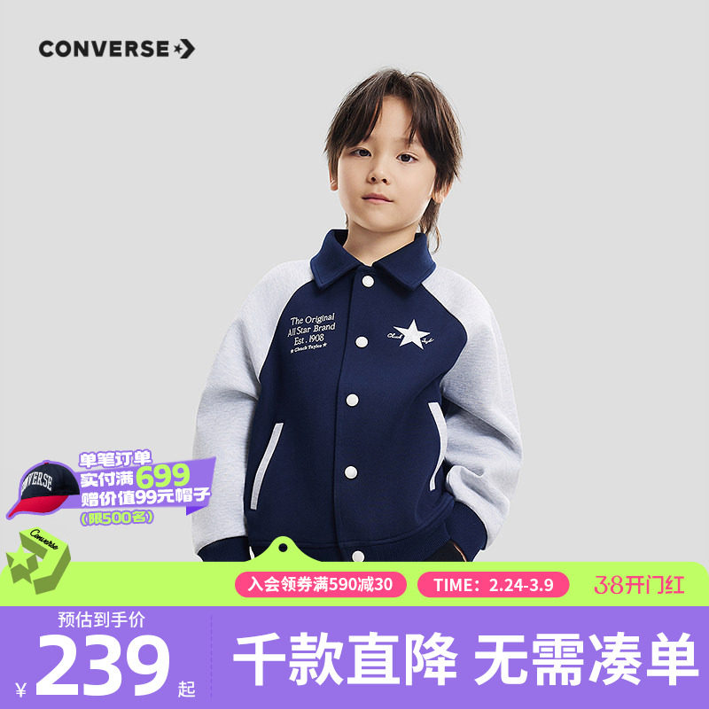 匡威童装男童夹克2026春季新款复古潮流外套棒球服单排扣百搭休闲