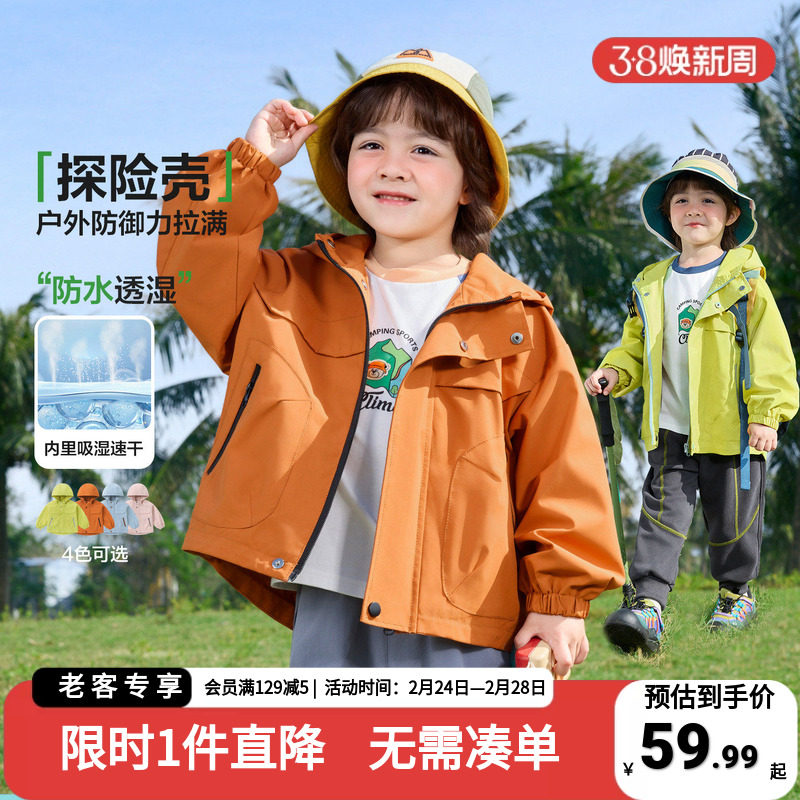 右欧童装儿童防水外套男童春秋山系户外风宝宝中小童连帽春装上衣