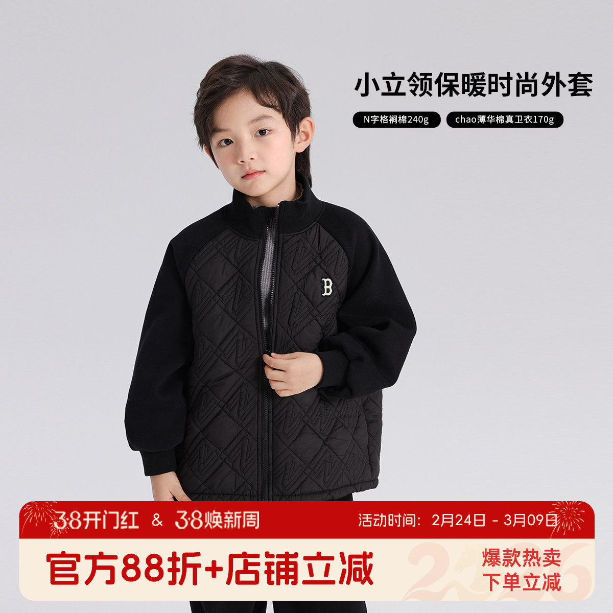布丁哈鲁冬装男童2024秋冬季新款儿童立领插肩袖保暖时尚外套