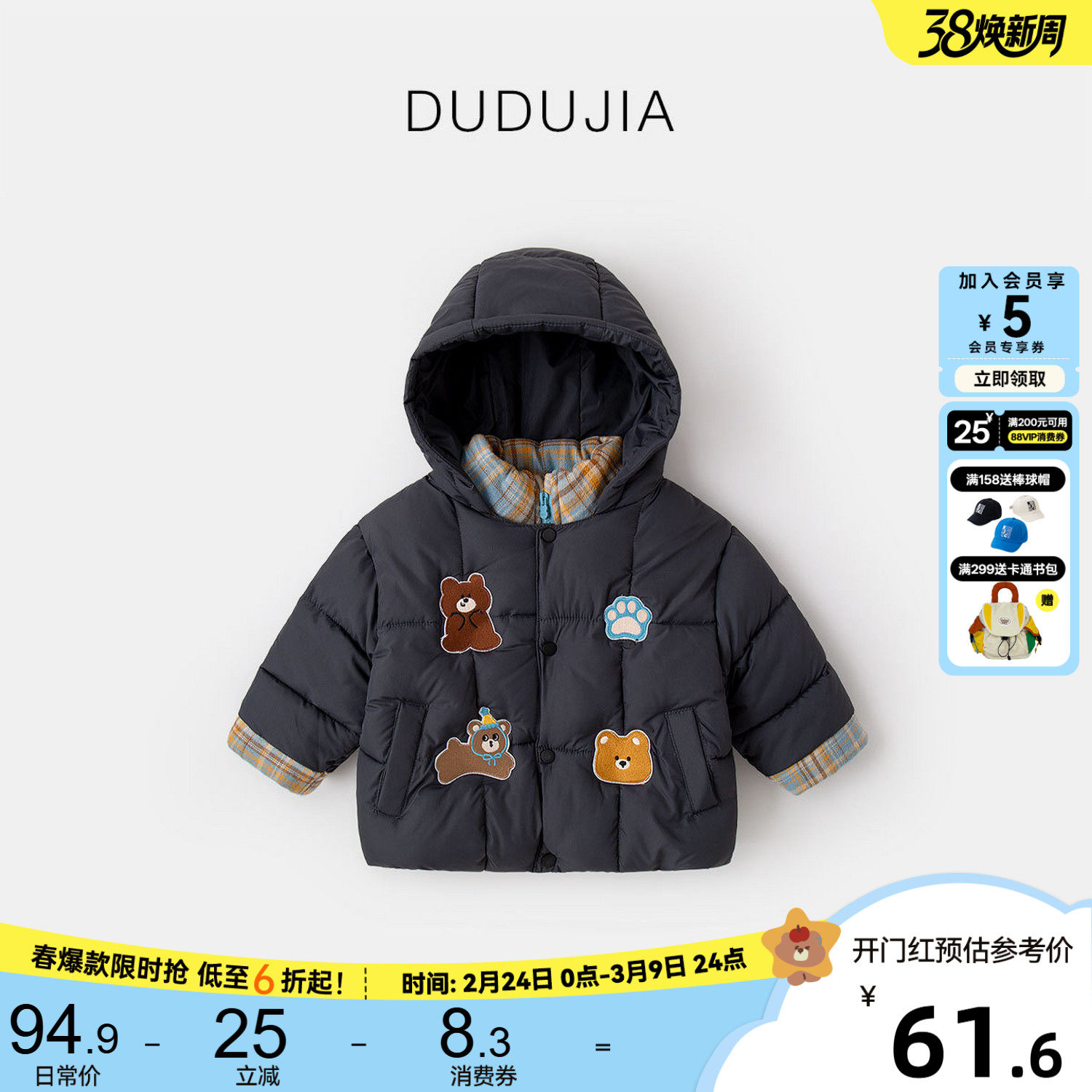 嘟嘟家宝宝棉服冬季新款男童外套洋气儿童棉袄红色女童衣服冬装类