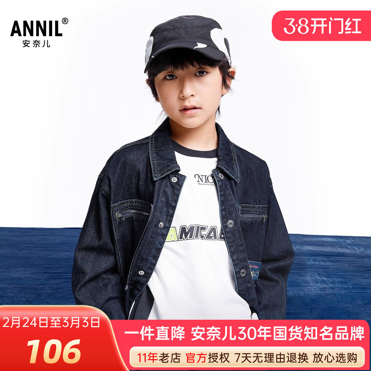 安奈儿男童装翻领牛仔外套2024秋季新款纯棉休闲上衣潮酷帅气百搭