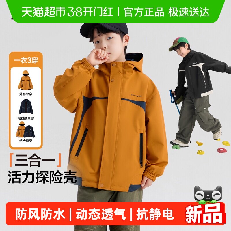 两件套|361度童装男童三防加厚外套2025冬季三合一儿童保暖上衣