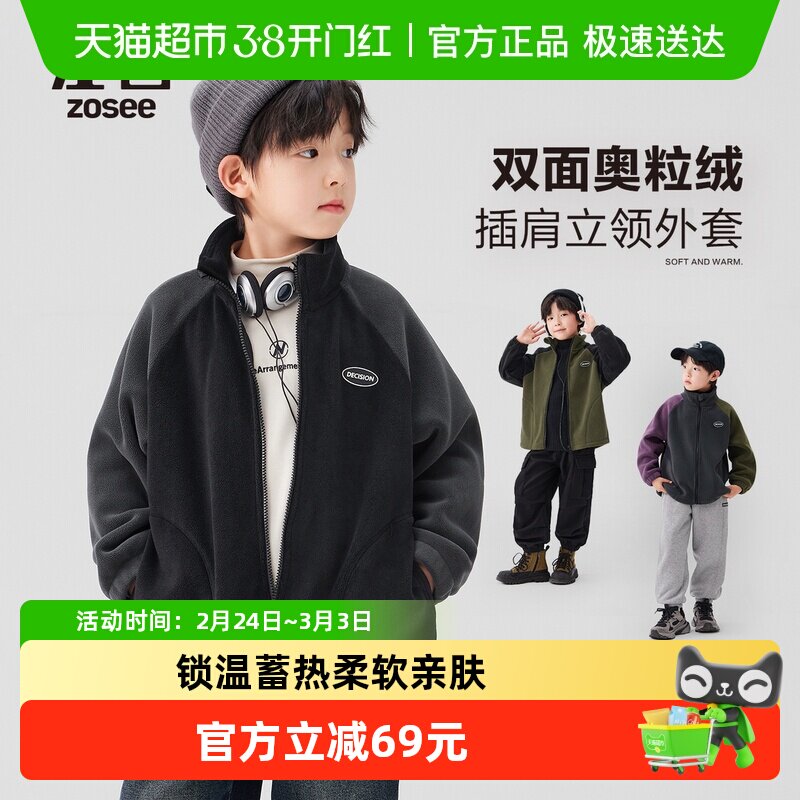 左西童装男童外套春秋2025新款儿童双面奥粒绒保暖冬装上衣洋气潮