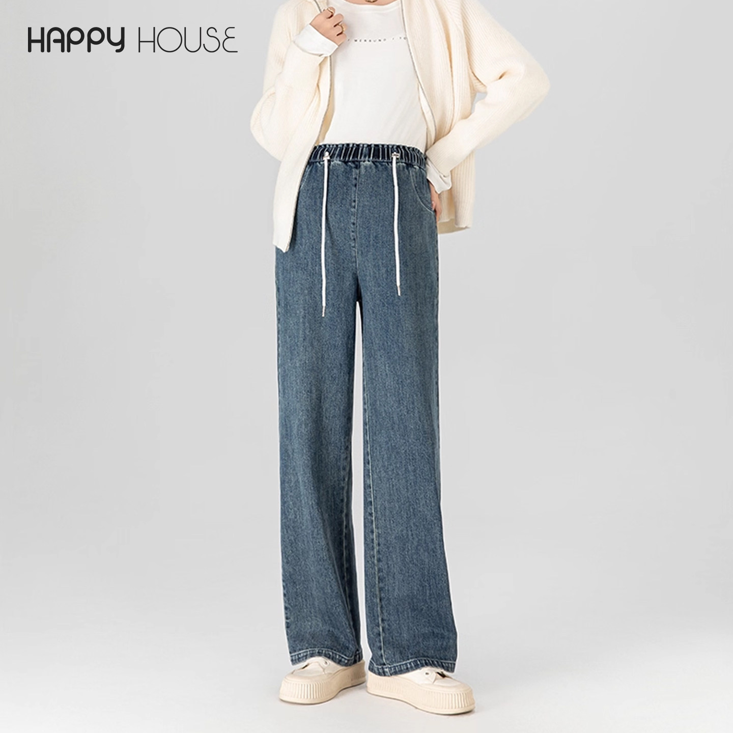 快乐屋孕妇无托腹牛仔裤秋冬2025新款时尚阔腿裤显瘦孕妇裤子外穿