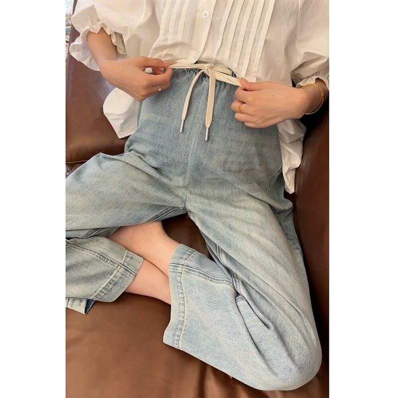 抽绳孕妇裤2024新款夏季薄款外穿无托腹牛仔裤女九分裤直筒阔腿裤
