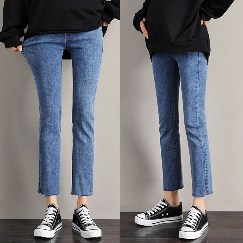孕妇裤子春秋外穿直筒裤微喇叭九分裤显瘦小个子托腹牛仔裤孕妇装