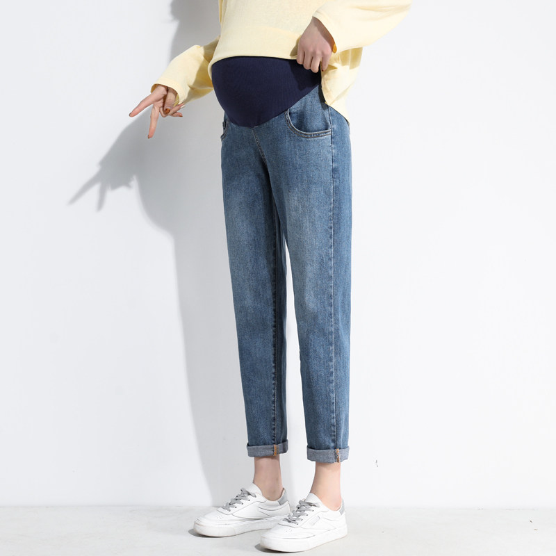 孕妇裤子春秋装外穿打底裤老爹小脚裤小个子显瘦九分裤托腹牛仔裤