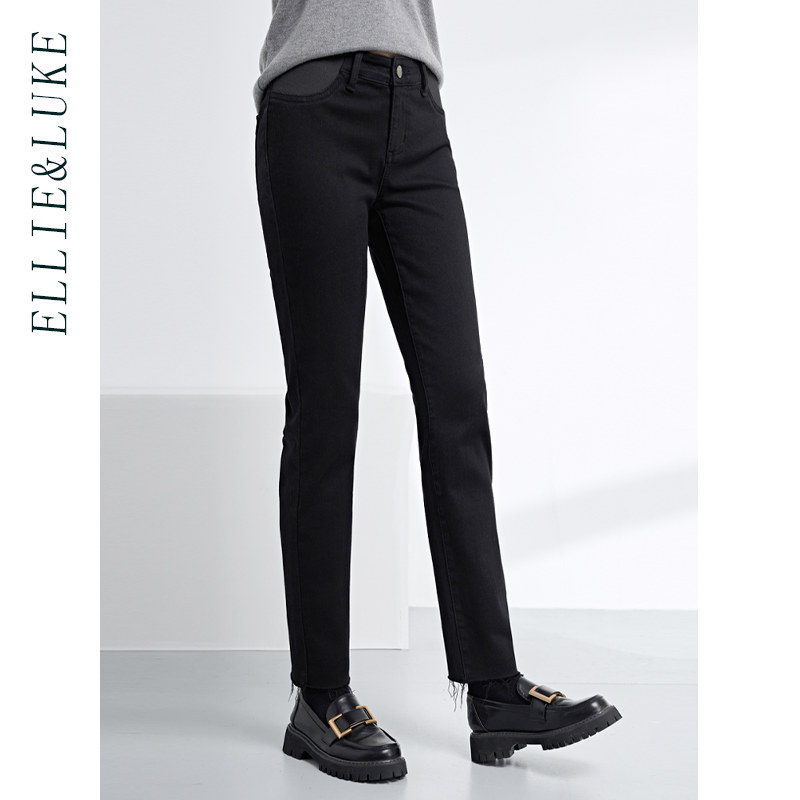 ellieluke孕妇裤子秋冬季外穿休闲托腹牛仔裤小个子直筒长裤冬款