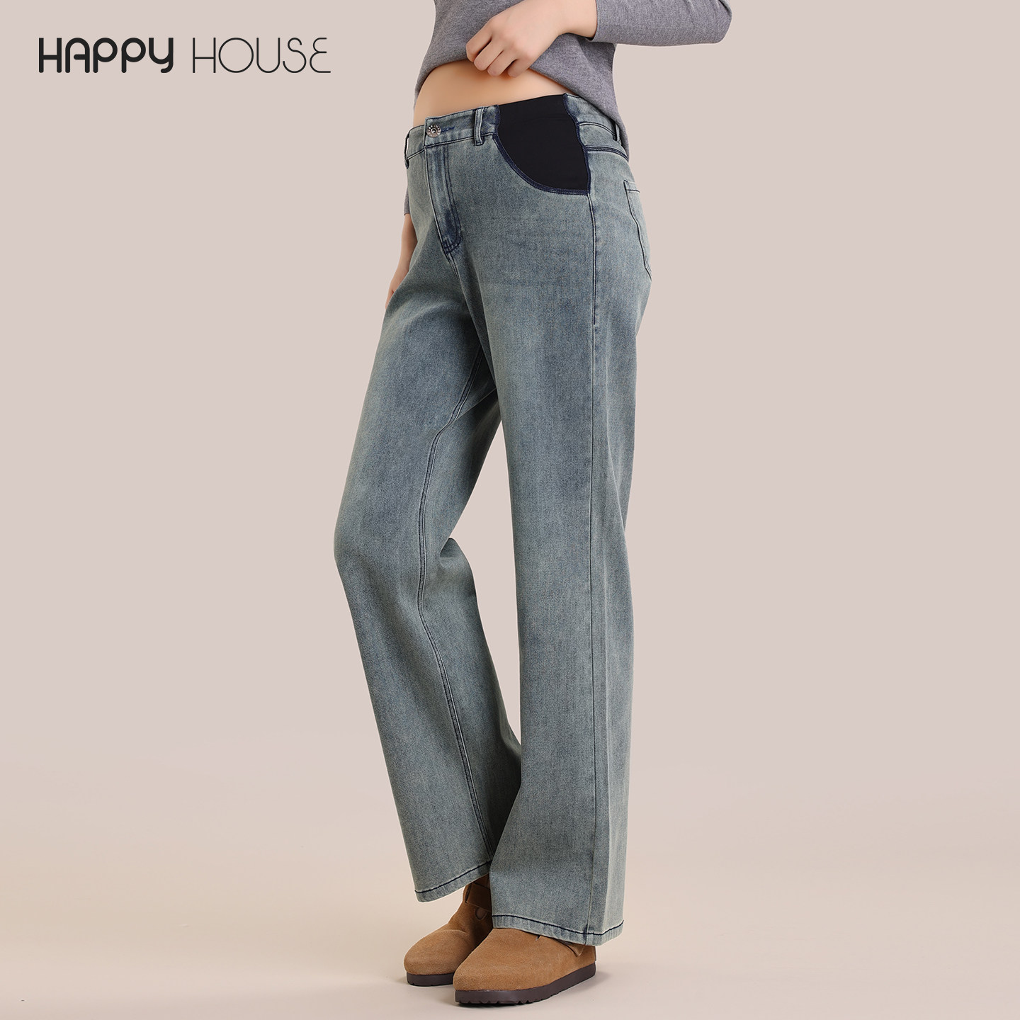 快乐屋孕妇直筒裤春秋外穿2025新款裤子无托腹牛仔裤产后裤孕早期