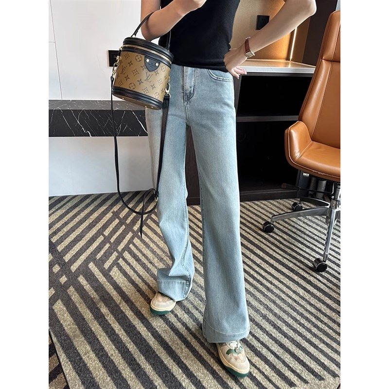 粗腿救星!孕妇拖地高腰托腹牛仔裤春秋2024新款显瘦蓝色微喇叭裤