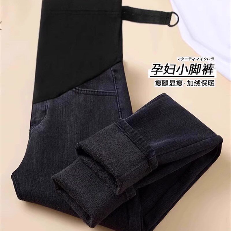 孕妇托腹牛仔裤子秋季外穿孕妇打底裤冬季加绒长裤秋冬小脚铅笔裤