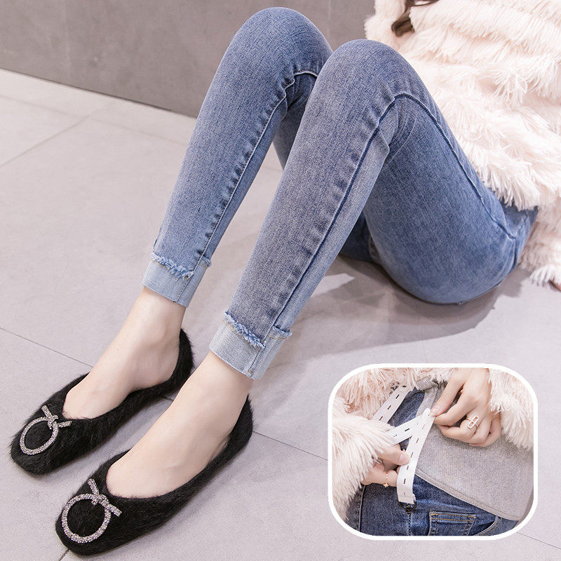 孕妇小脚牛仔裤秋季外穿大码小个子大码秋冬加绒加厚紧身托腹长裤